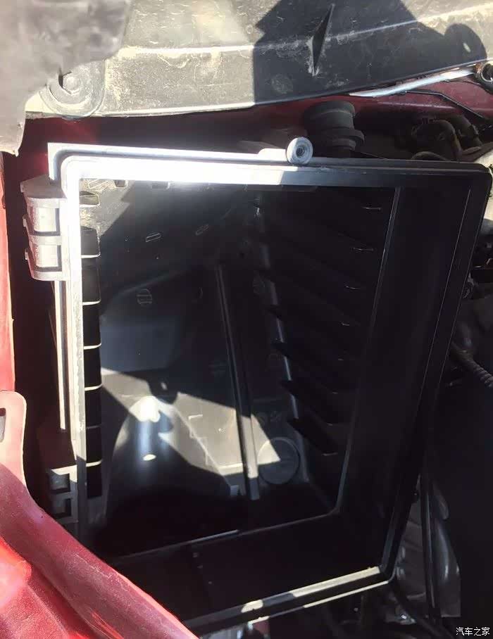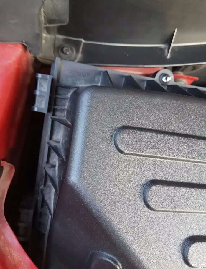 注意空气滤芯盒上面的卡扣,拧下螺钉后,将盖子轻轻向右边拉出即可,切机不可上下掰拉。