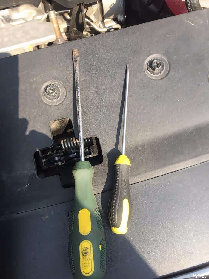 准备的拆卸空气滤芯盒子的工具,最好是能找两支一长一短的十字起来,操作起来会更方便哦。