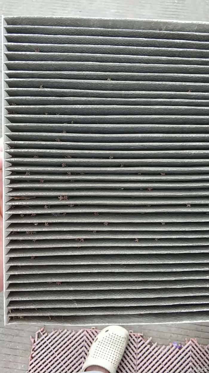 原装空调滤芯内的桂花瓣及各类杂物,看上去确实比较脏污。将新购买的滤芯装上后即可安装密封盖,按相反的方向锁好锁扣,安装储物箱即可。