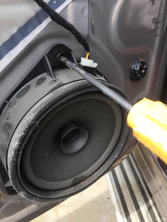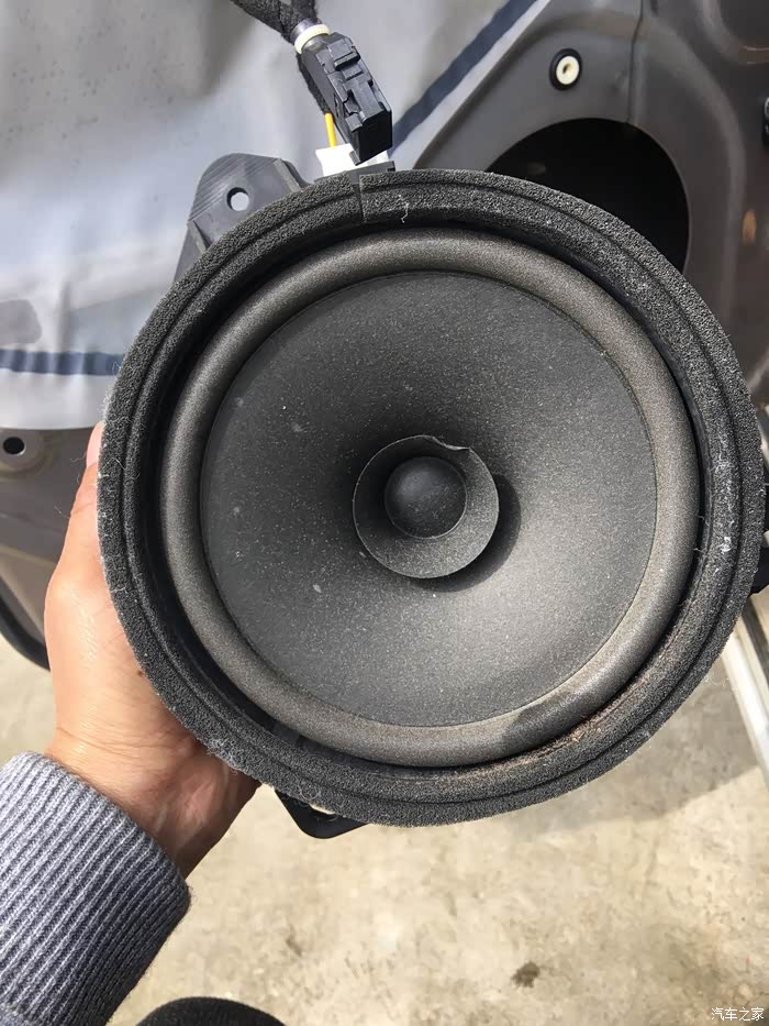 喇叭拿下来之后放在一边。喇叭插头拔掉。