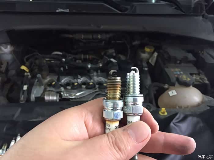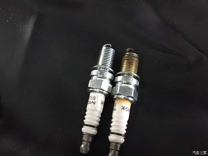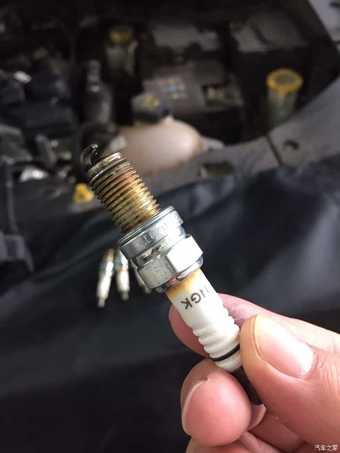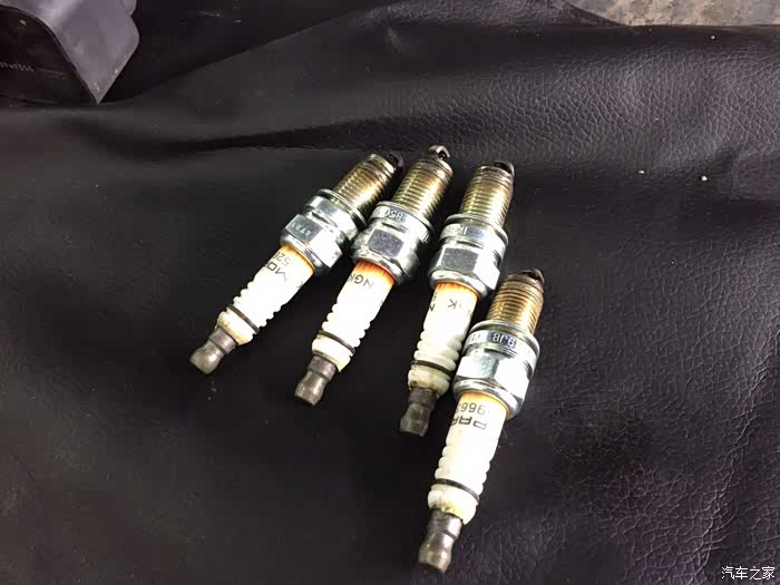 四个火花塞,已经烧黄了,师傅说像这样子被烧黄的部分就可能漏气,导致油耗稍高