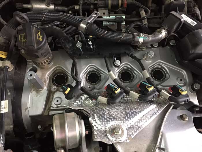 我去拍照的时候,师傅已经很熟练的将发动机四个缸火花晒取下来了,我也是第一次看见车辆被拔下火花塞的样子,四个孔