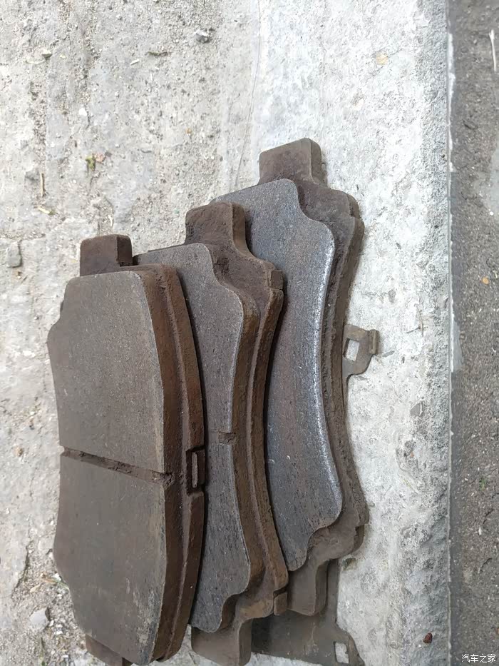 刹车片,看上去外侧很厚,但是里侧不多了。