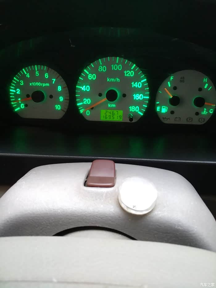 五一放假,北斗星已经17万公里了,前刹车片还是原装的,没有更换过。从外面看,刹车片还很厚,超过6MM。里面看不见厚度。感觉可以更换了,自己动手更换,顶起前轮,卸轮胎,拧下来刹车油壶盖(主要为了顶回活塞方便,别忘记防尘,密封,好了别忘记盖上)。拆分泵螺丝,很简单,就下面一个螺丝,17MM扳手。然后翻起分泵,用专用工具顶回活塞,顶活塞不需要太大力,油壶已经取下盖,轻轻松松的顶回去了。(专用工具就是一个螺母,2侧焊接一段钢筋,螺母中间拧上加长螺丝就行,也可以一块铁板,中间钻孔攻丝也行。)原来的刹车片拿下来换上新的,螺丝和导向定位肖用黄油润滑一下,装回分泵,装回轮胎。另外一侧一样操作。然后拧上油壶盖。上车先踩几脚刹车,感觉刹车踩不动了,再发动,试车。OK!另外,仪表盘指示灯坏了2个,网购了4个一套指示灯(3.5元一个),一起换了,才14元。便宜啊!上图!图片可能顺序有点乱,各位将就着点