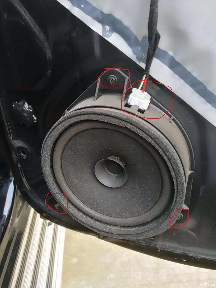 门板拆下后,拔下插头,接下来就要拆喇叭了。