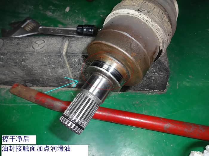在换档把线时,发现驾驶员侧半轴油封漏油了,右侧半轴油封早几年前就更换过了,就一起换掉吧。