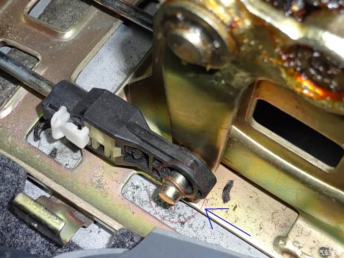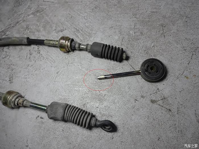 这个档位拉线头部,有个塑料轴套,早几年已脱落,当时我用铜线给扎了下,使用至今。
