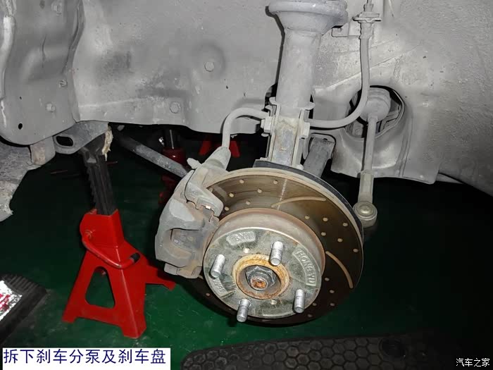 换半轴先把刹车泵,刹车泵拆除,方便抽半轴。