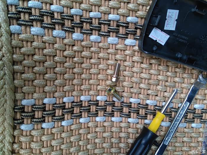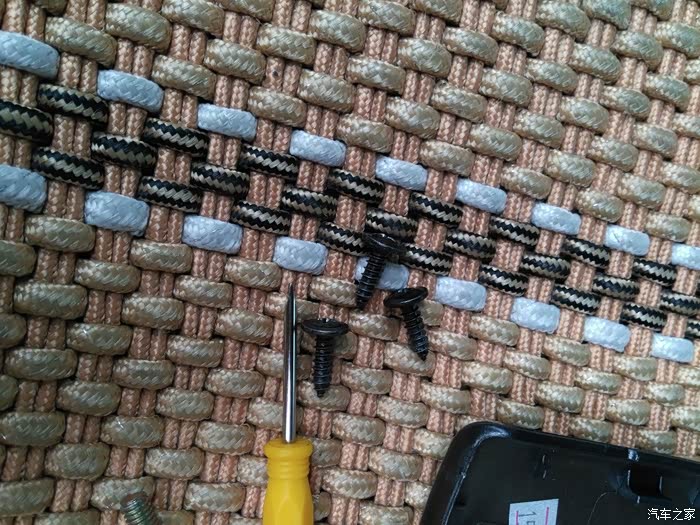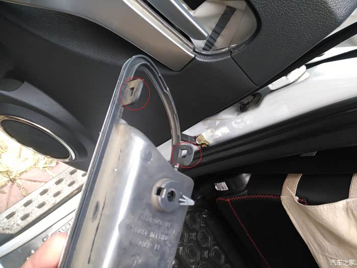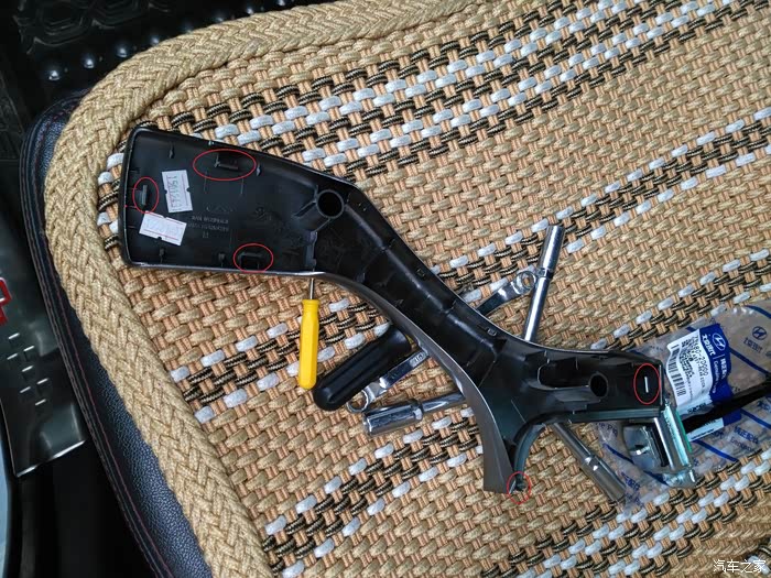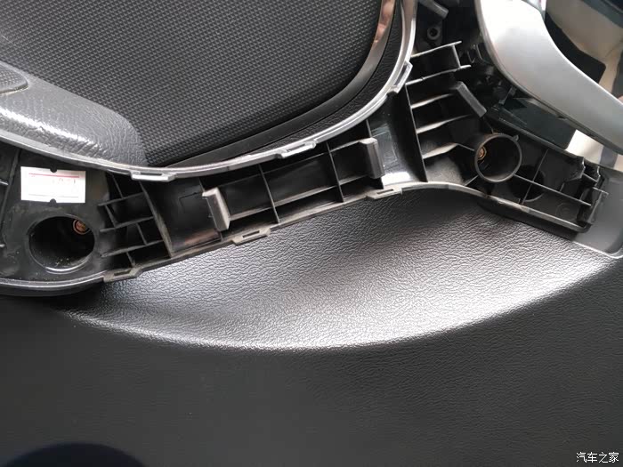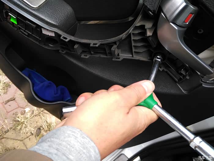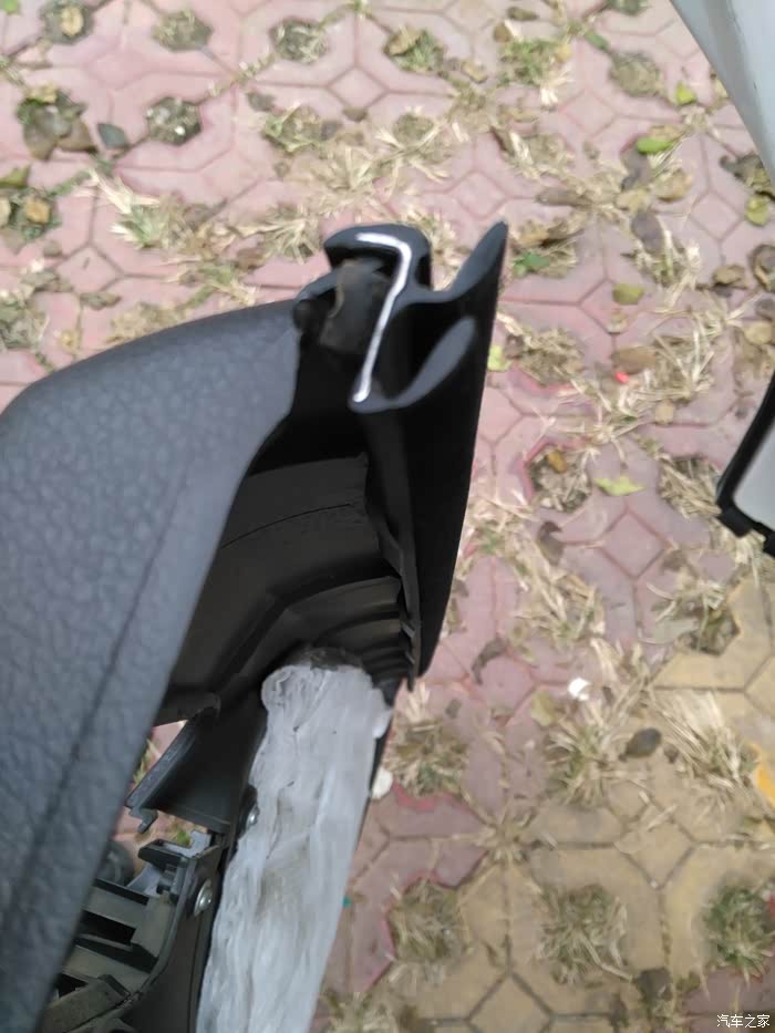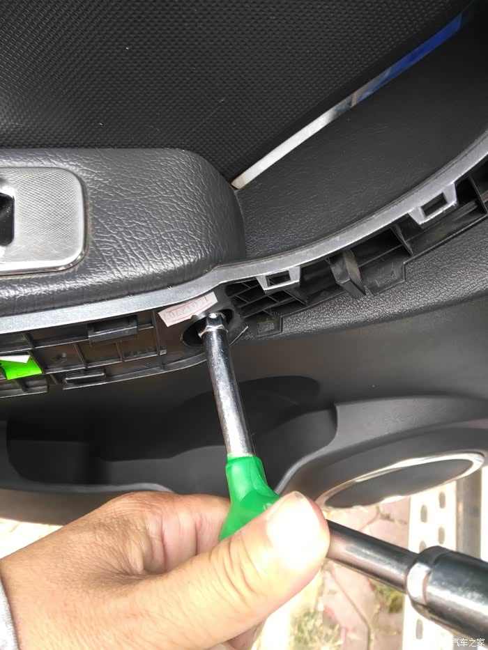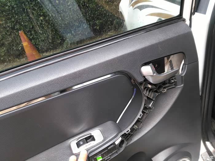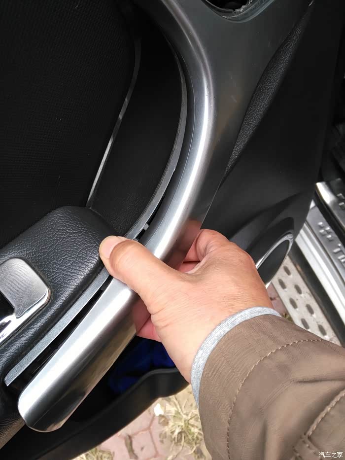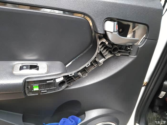 拿下拉手盖板。盖板上面有三个塑料卡扣,现在的天气还可以,不是太冷,不必担心会弄断卡扣。