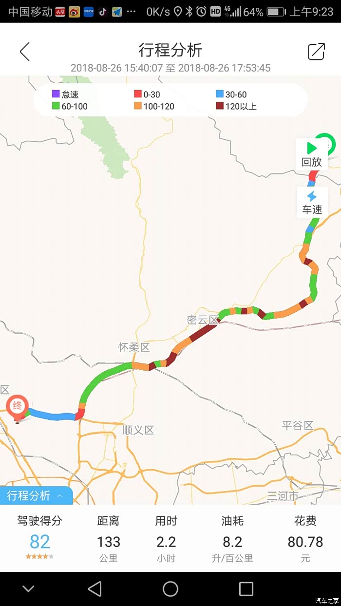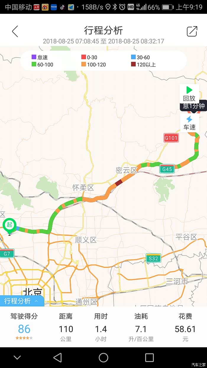 最后付一张综合行驶,可以看出速度不错,除了开局修路路段外加上六环堵了一路整体油耗8.2,接近我之前评测!