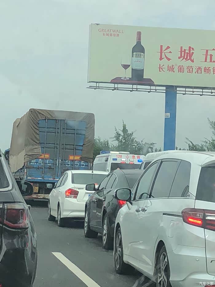 这大拜五的都去远方啊?其实我想说,这是在应急车道一辆救护车,真的有很多车不自觉地堵在了应急车道上,看着车的急救声就如同病人在车内急促地呼吸着,不脸红么?切忌随意走应急车道!