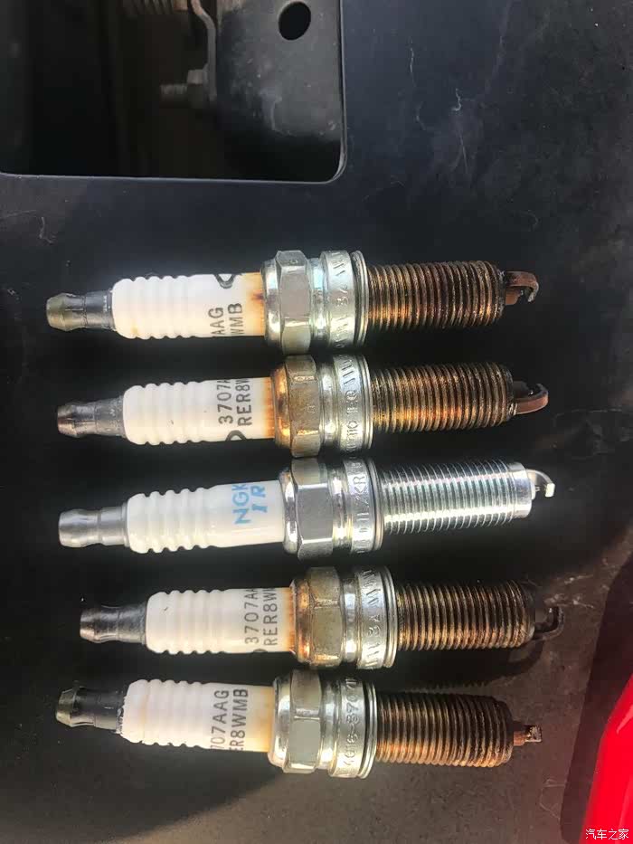 拆火花塞的时候要逆时针拧下来。拍的有点虚了。四个旧的准备回去白醋泡下,备用