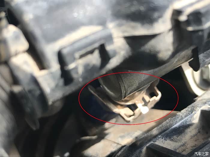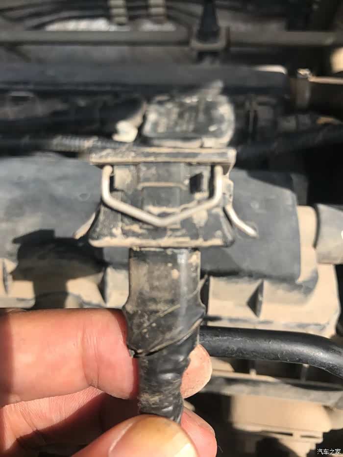 注意这个图,用螺丝刀撬着卡子往上翘,使两个卡片卡到油轨的外壳。我拆的时候用力过大,卡片不能完美归位。需要用大开口钳子捏两卡片使之归位了,手里没有,网购吧,近几天尽量少东车子吧