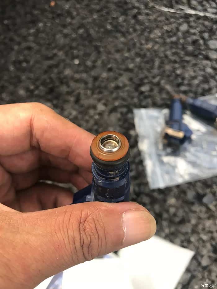 注意这个图,喷油嘴外面就是密封圈,这个头是连接油轨的。这个头拔的时候小心点,密封圈很容易从喷油嘴脱落。