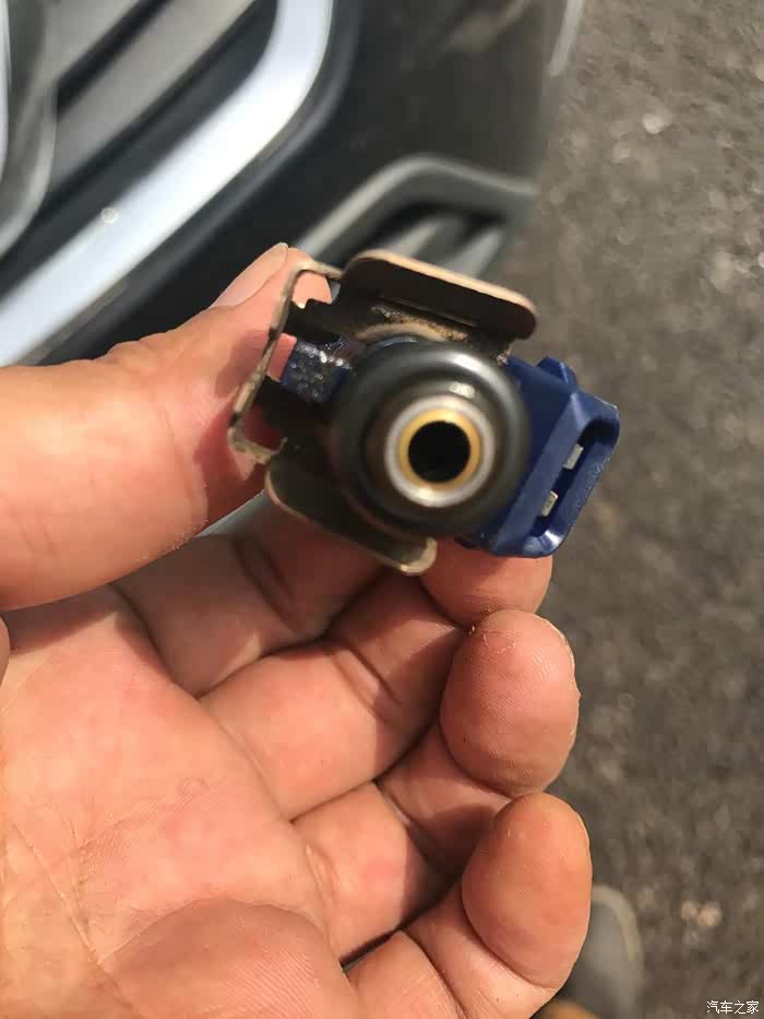 可以看到喷油嘴上一共有两个固定卡子。一个是固定喷油嘴电源的,一个是把喷油嘴与油轨固定的卡子。