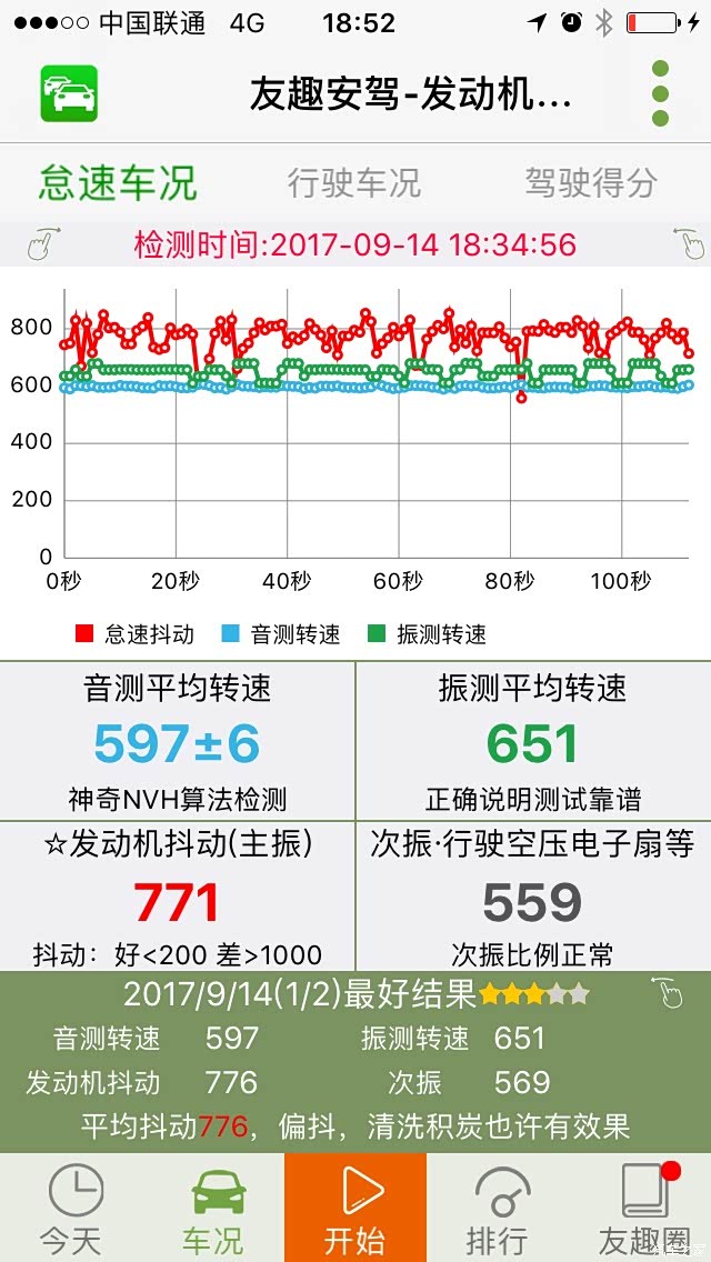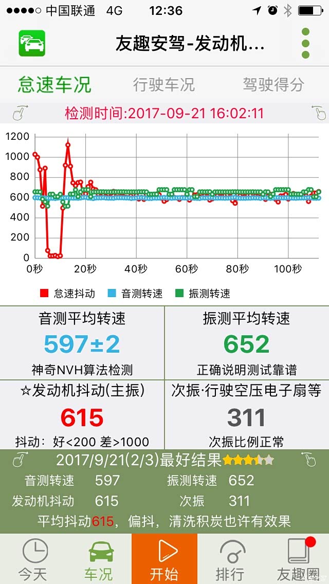 先上测试图。这是一个APP。用来监测车辆怠速抖动的。这张图是没有更换火花塞之前的检测图