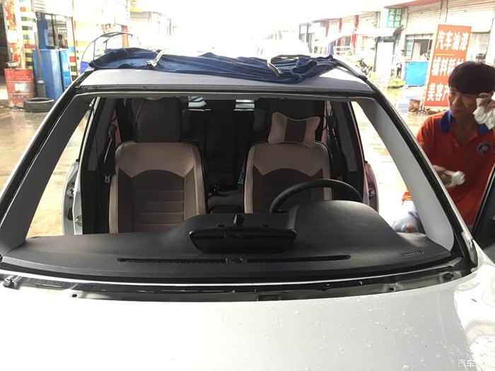 玻璃胶打完以后就开始安装新的前挡玻璃了!