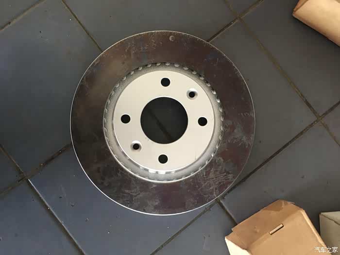 这个不是新的,是前面的刹车盘,4S店拿去打磨了以下,和新的没啥区别,前面的基本没什么磨损.主要哈市后面