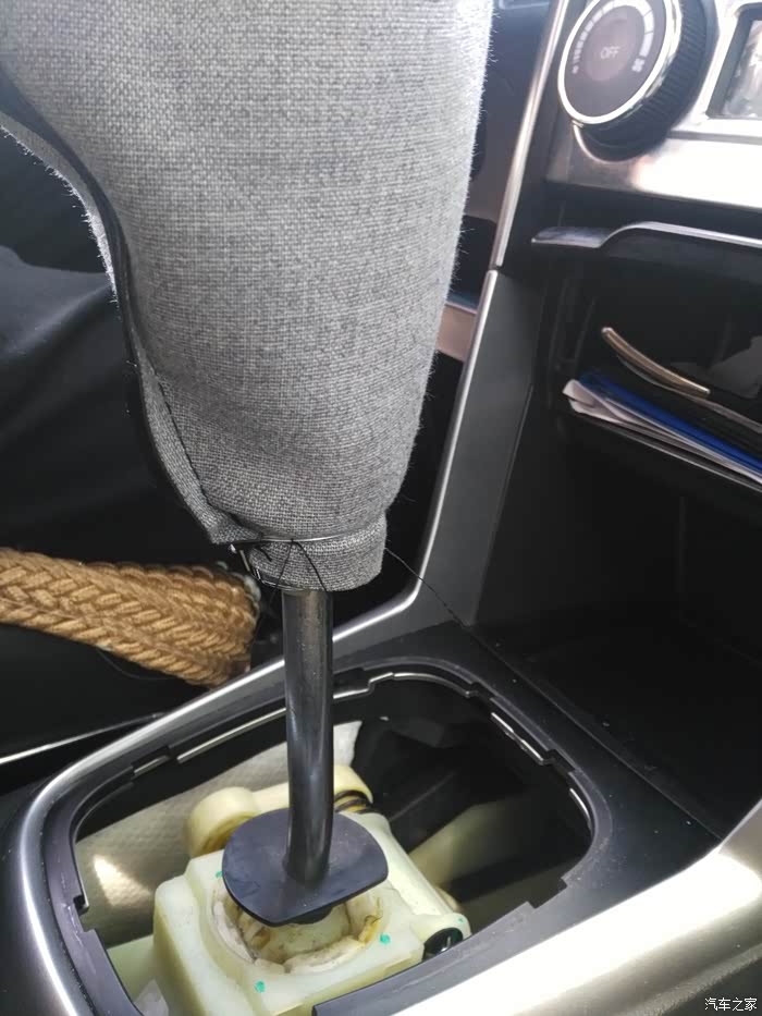 更换安装很简单,用时十几分钟。没有什么技巧,防尘罩拆的时候就是几个卡扣往上撬,安装的时候往下压。挡把头拆的时候垂直往上拔,安装的时候垂直往下使劲拍。挡把头往上拔没有多大力气就拔下来了,安装的时候真费劲,得使劲往下拍,手掌都拍红了。