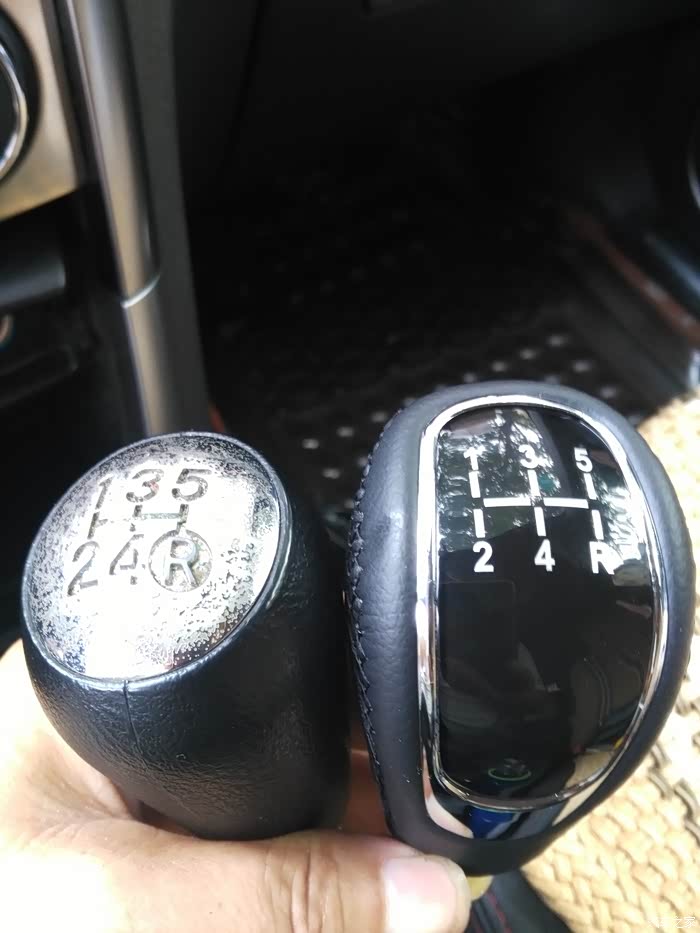 原车挡把头和新买的G5挡把头对比,新买的长了一点。