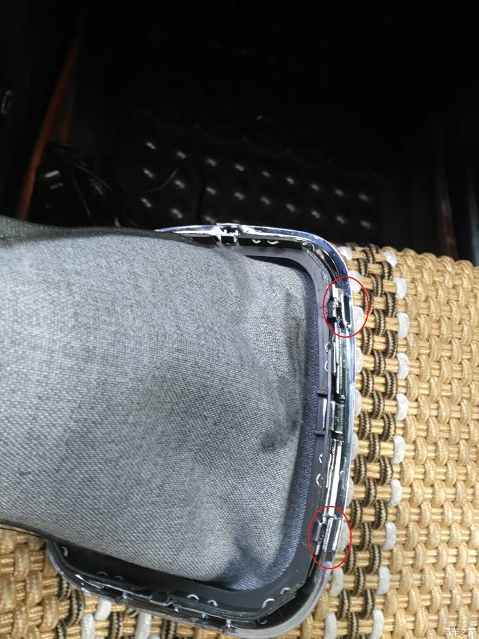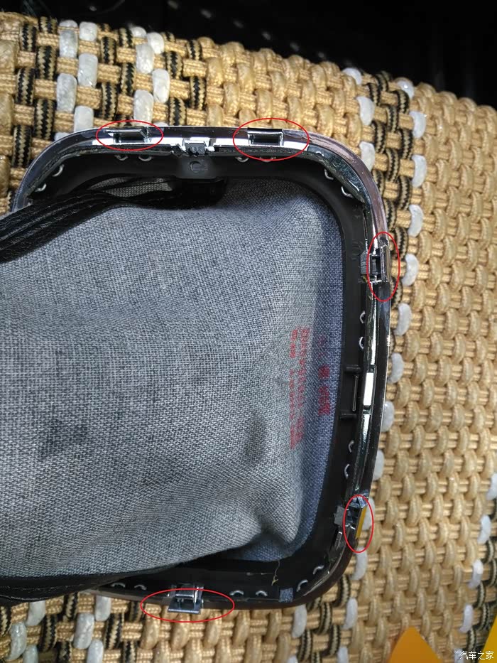 防尘罩上面有7个卡扣,前面两个,后面一个,左右各两个