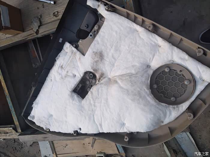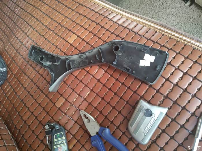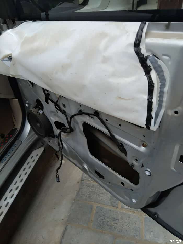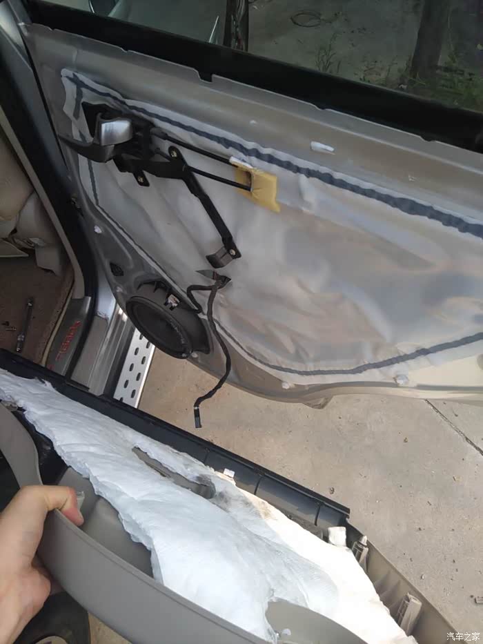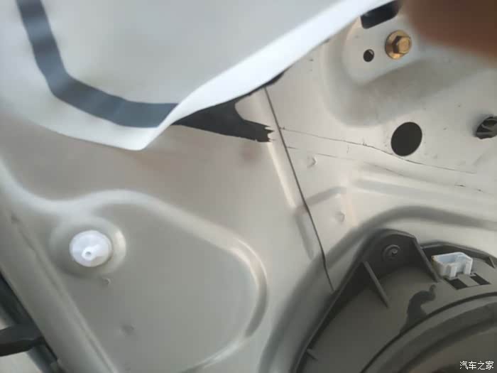 右后门,之前买的门把手内腕粘的实在是紧,光是取掉这个就费了劲,因为里面有颗固定螺丝,必须拿掉。