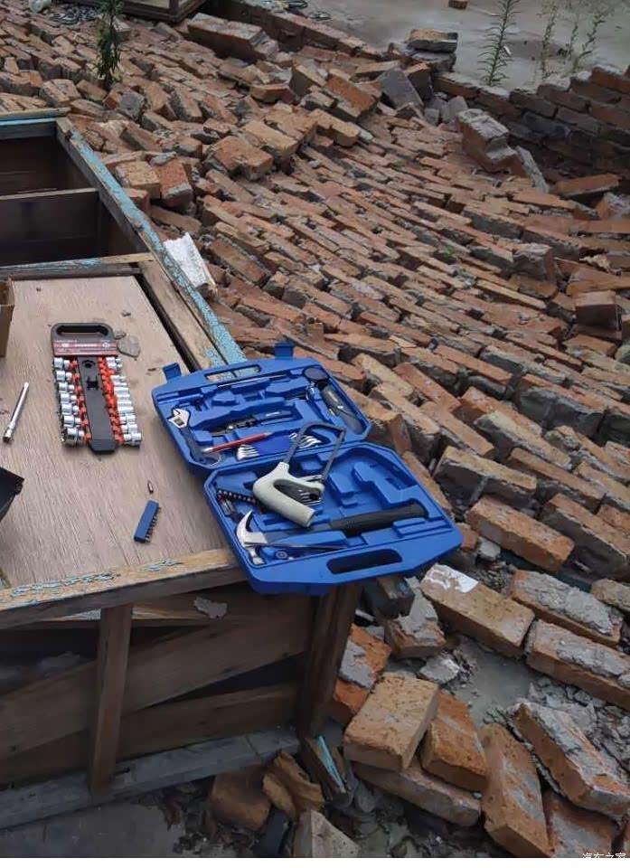 防水的塑料纸小心的把下截撕下来,用的是胶泥,粘性很好。后面安装完成后还要再粘回去。