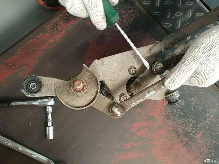 这个地方使用球头来链接,运转的。先用螺丝刀把雨刷臂球头拆掉。