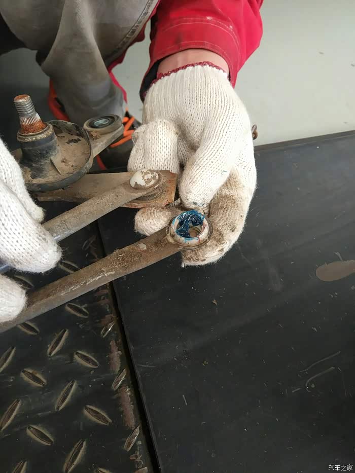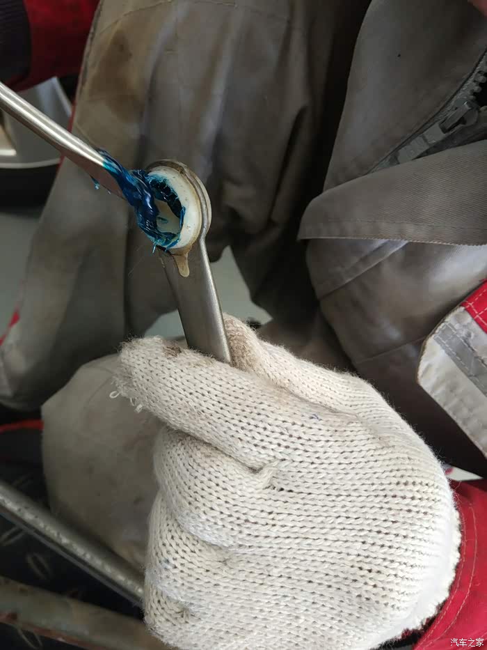 不用拆卸的雨刷连杆球头师傅也拆了下来,清洁干净,然后用黄油重新保养一下。