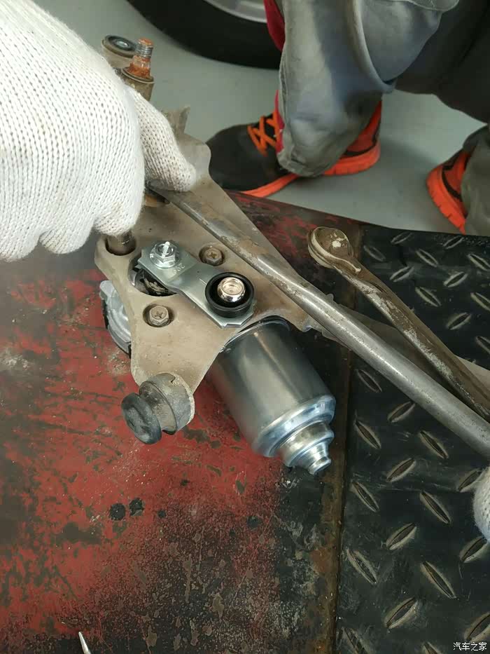 安装三个雨刷电机的固定螺丝。现在新的雨刷电机已经成功安装上。