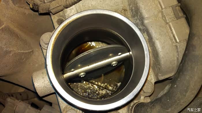 顺便看看节气门脏不脏,距离之前清洗快8千公里了,还好,不是很脏,既然拆开了,就擦一擦吧。