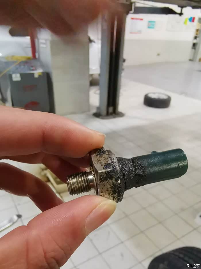 很快发现漏油点,维修老师说就是这颗像螺丝一样的叫机油压力传感器的东西漏油