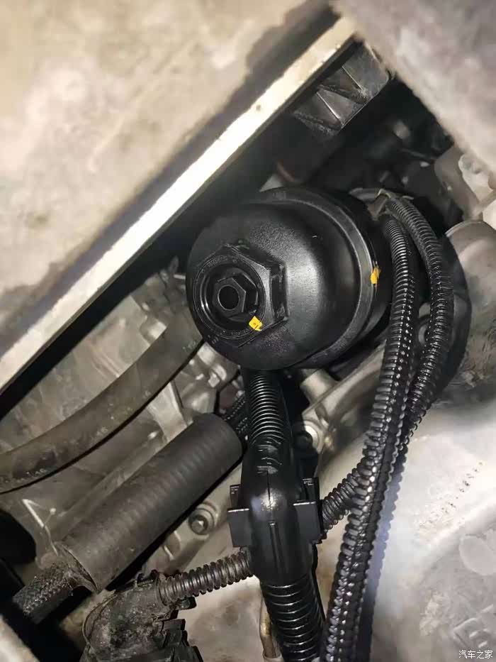 清洗干净机油滤芯盖,同时更换新的机油滤芯螺丝和机油滤芯。