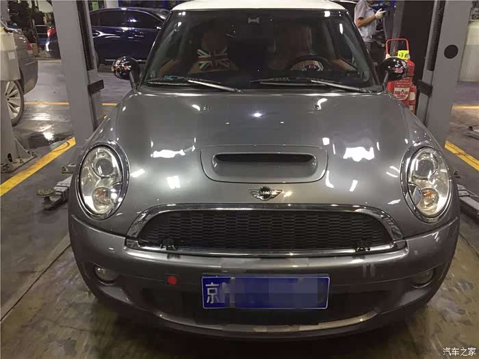 这是一辆09年出厂的MINICooperS,采用了宝马的N14B16发动机,目前的行驶里程数是8万公里,对于一辆小十年车龄的车型来说,8万公里的跟公里数确实有点少,由此可见,这辆车一定车主用来旅行和游玩的车辆,并不在日常的经常使用车型中。虽然小十年过去了,但是他的成色确是相当的好,仅仅是在前杠的部位有了一点漆面的脱落。对于发动机舱盖的进风口我是十分喜欢的,可以进一步的降低发动机舱内部的温度,多数是在赛车上面应用的比较多。