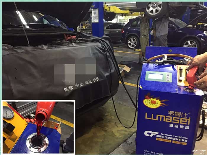 进行更换变速箱油液,我采用了全自动循环机进行变速箱油的更换,