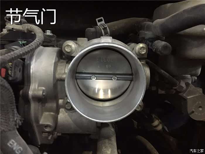 将进气总管拆掉后,可以见到节气门真的是干净的令人发指,没有一点灰尘的痕迹。由此可见车主对车辆保养的情况十分的在意,发动机肯定一直处于中负荷的情况下运转,没有一点的积碳堆积情况,这样的行驶环境对车辆来说是最好的。