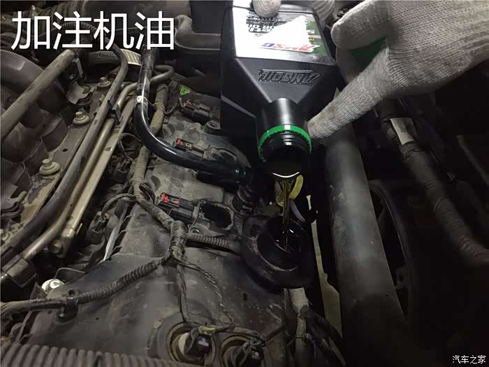 进行机油的加注,加了整整5.5升进去,3.5V6的发动机真的很能装机油啊,普拉多4.0排量的发动机。