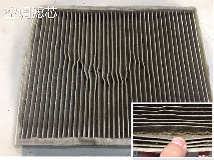额~这个空调滤芯真的是跟我们家的吸油烟机的滤芯有一拼了。我将它拿出来的时候是小心翼翼的,生怕里面的灰尘遗落出来,右下角的放大窗口可以见到里面的堆积的绒絮和灰尘,pm2.5在此处就是小弟弟了。