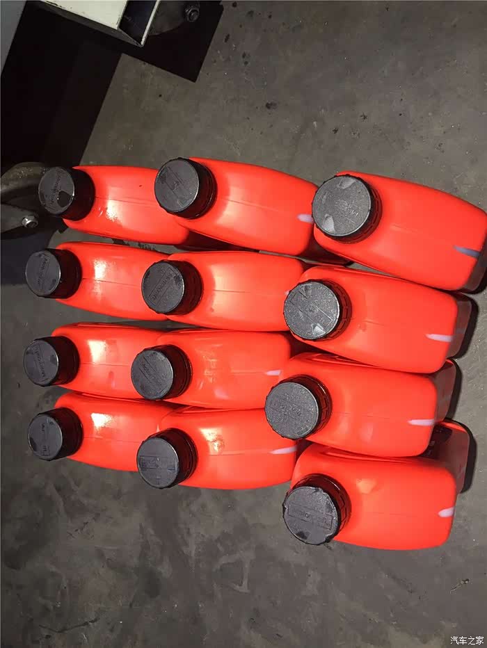没错,这就是变速箱油,整整12瓶,一共是12升。由于用循环机换油这是注定要多用油的,这个大红色是不是够喜庆的。