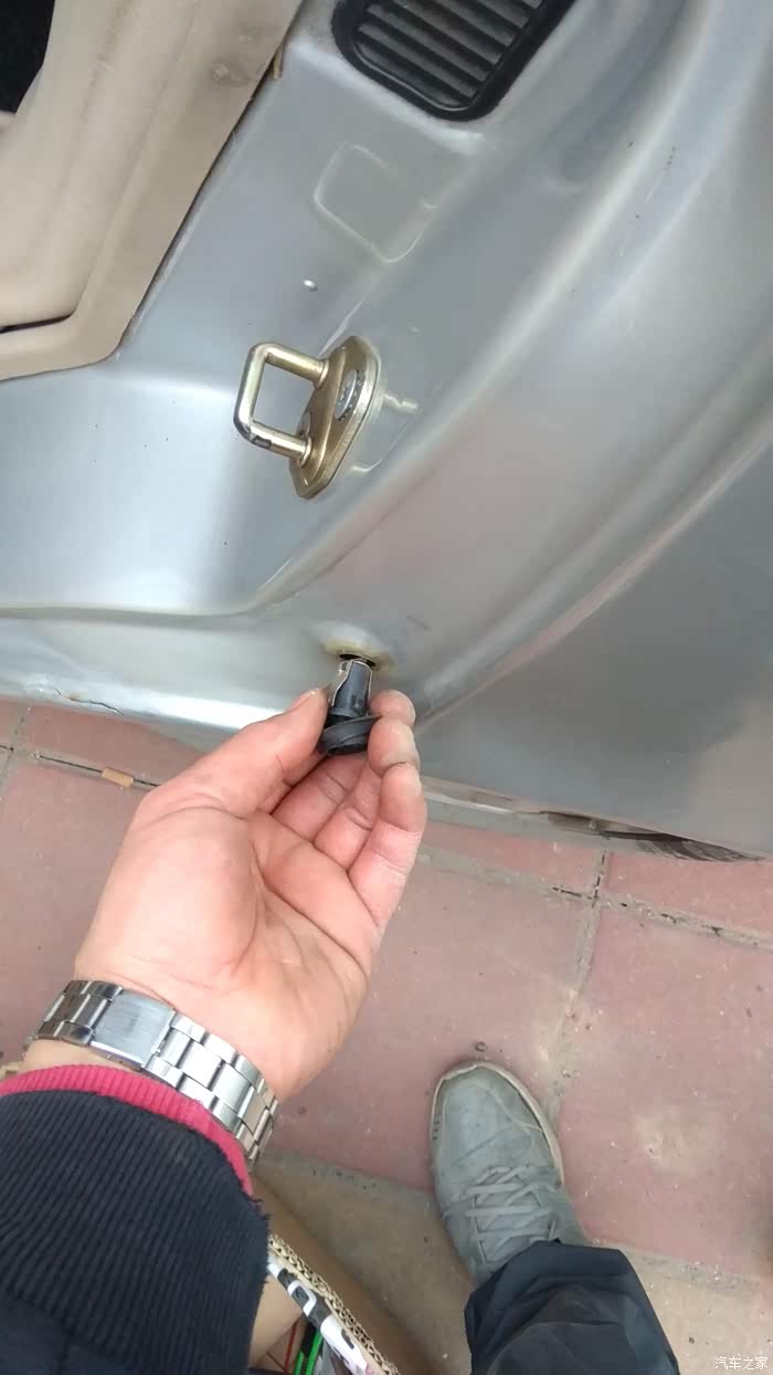 这个穿心扣本来应该和装饰板同一颜色的,去年换副厂门碰扣子坏了,随便找了个黑色的顶替。