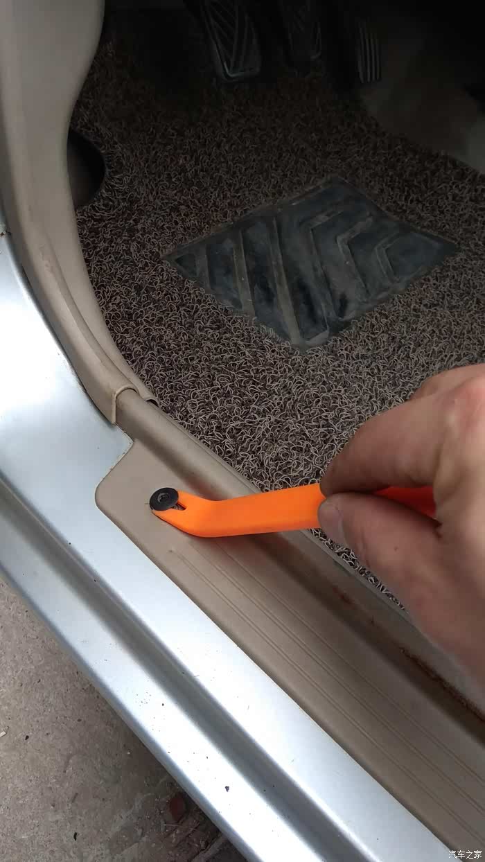 为了装新门碰时线好装一点,我把B柱安全带装饰板拿了下来