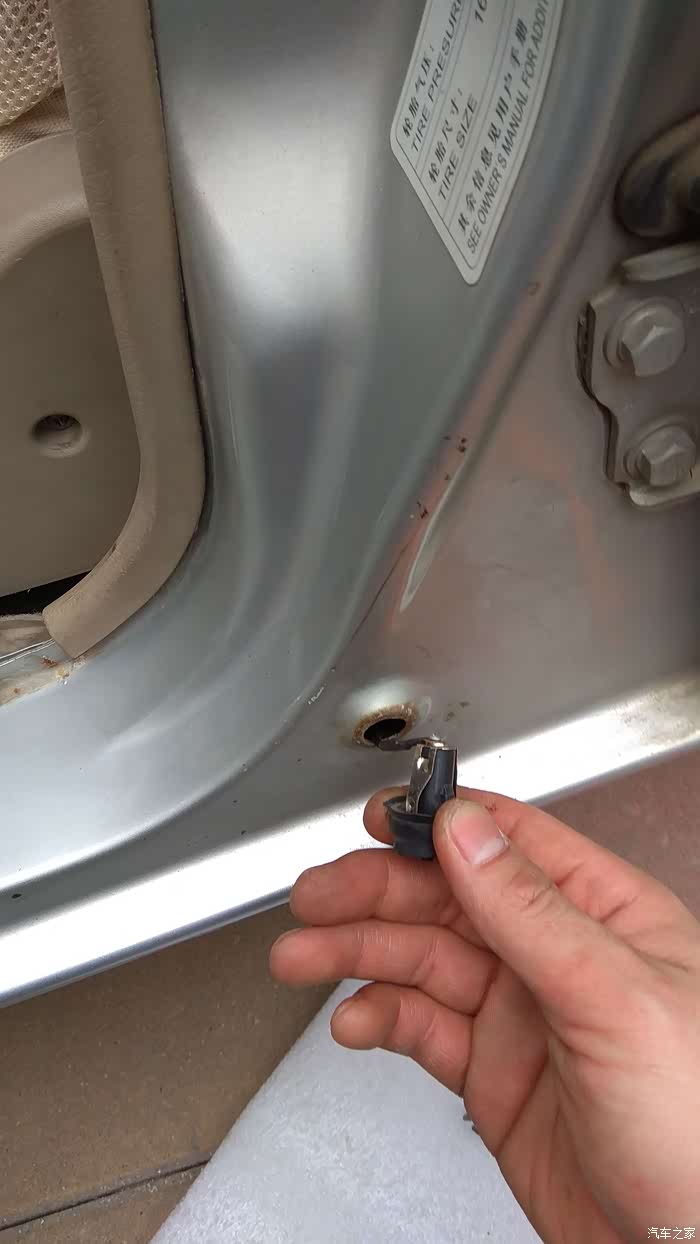 左侧两个车门的门碰橡胶部分断裂,不好看。由于换了副厂的,不到一年橡胶就开裂了,找了羊友“蓝色的忧郁”买了两个原厂门碰,这样应该可以用很久。