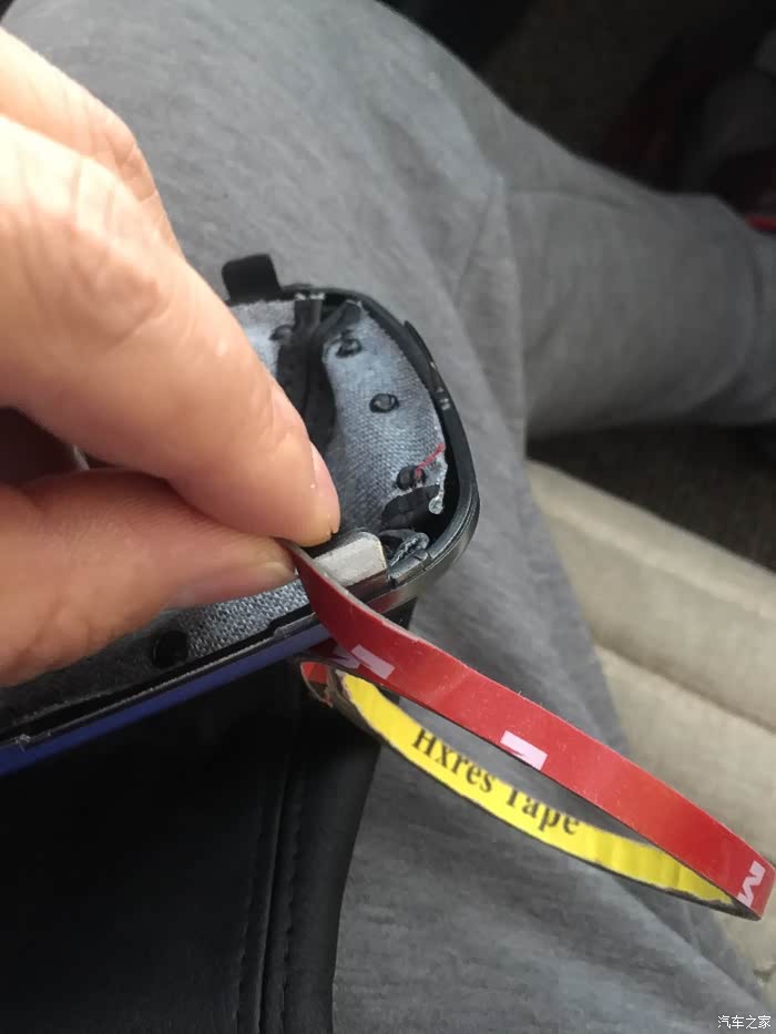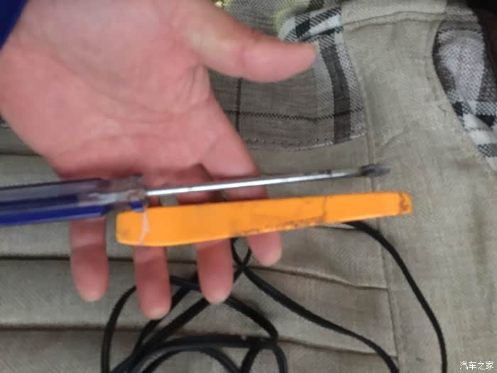 用螺丝刀撬开个口。用黄色面板工具别开画蓝色线的地方。用力就拿下来了,不要拧球头,里面有卡容易碎。