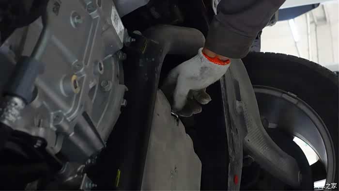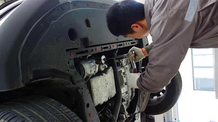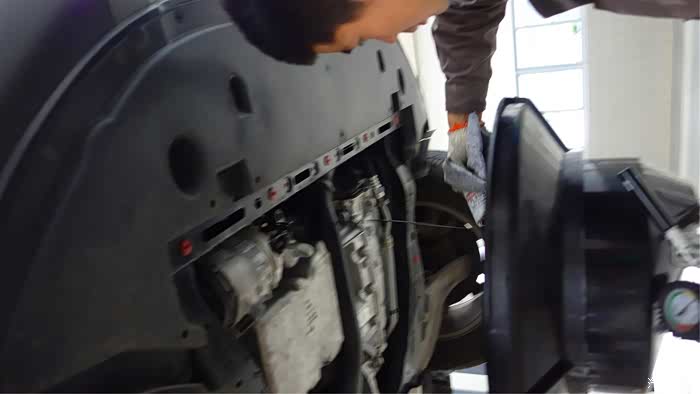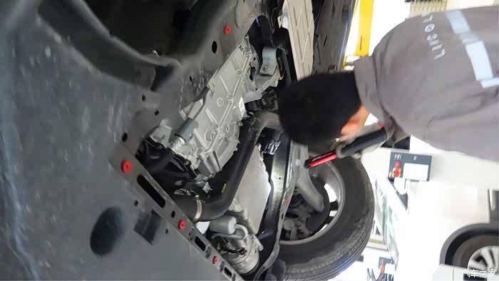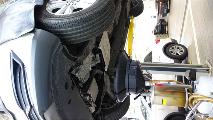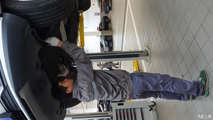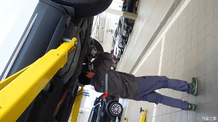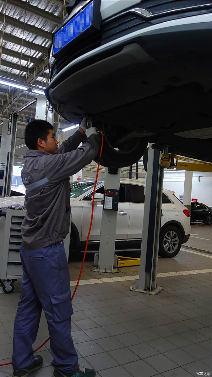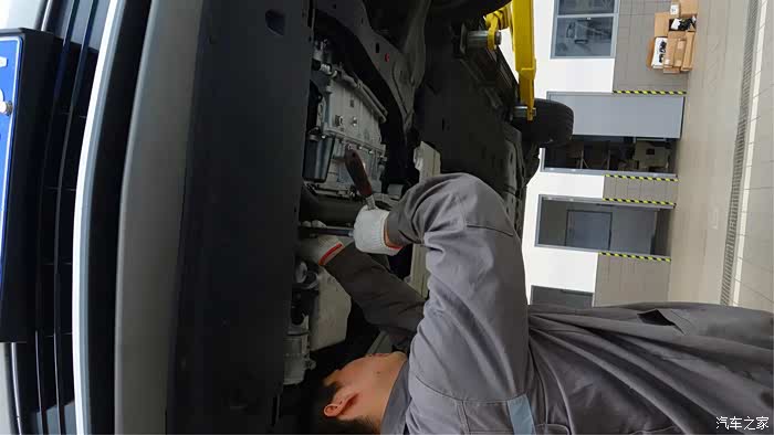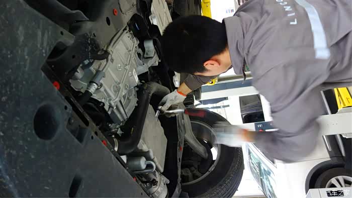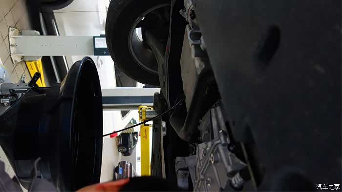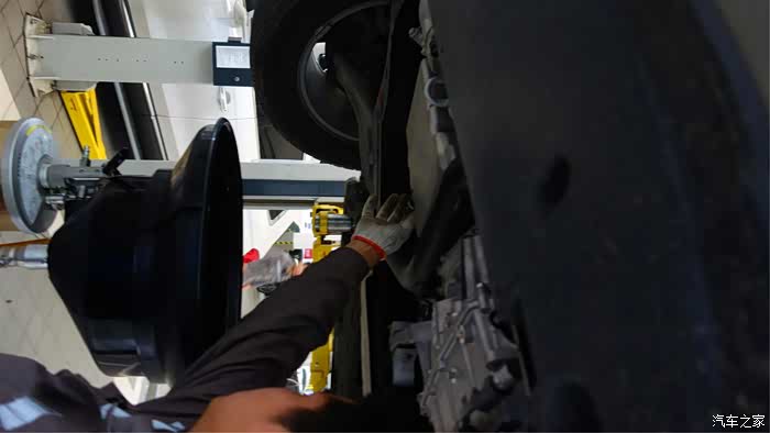 弄完机油,把东西移开之后,师傅开始检查前面的底盘和悬架
