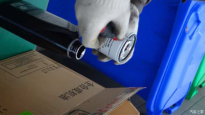 最后就是倒入新机油,差不多5.5L吧,6桶1L装的机油,最后剩了半桶