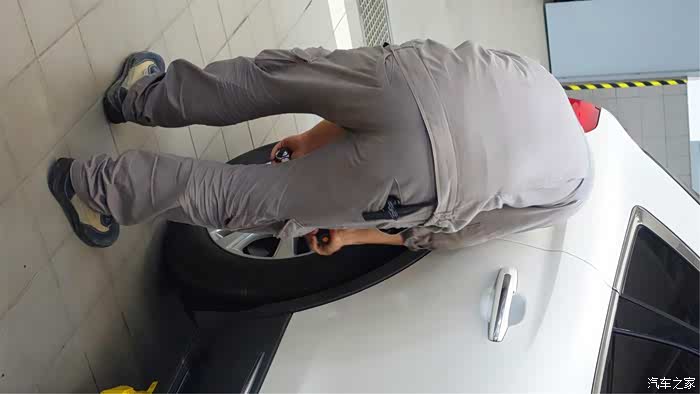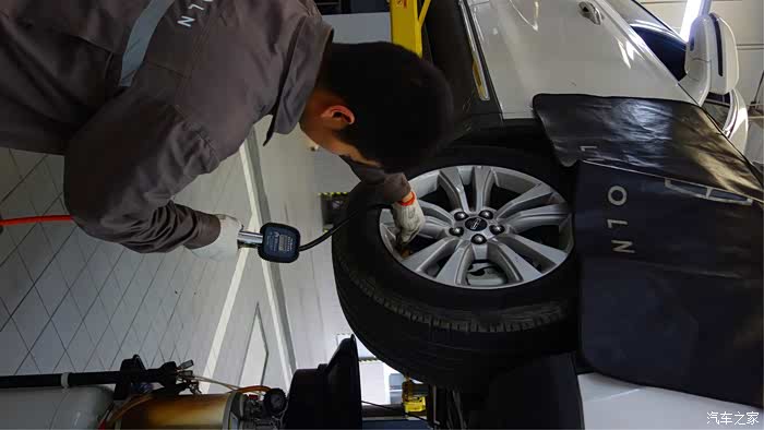 放油的间隙,师傅开始给轮胎补气、检查轮胎深度