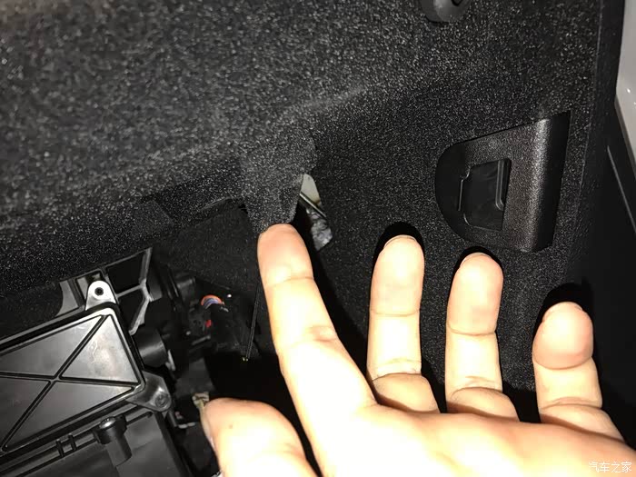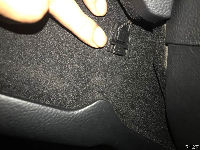 开始教你们怎么换空调滤芯;空调滤芯在副驾手扶箱里面,打开手扶箱,右边有个缓冲拉带,需要取下来。