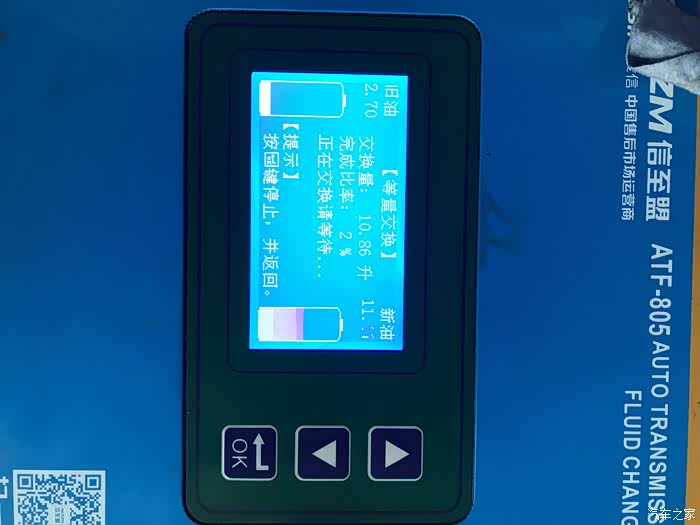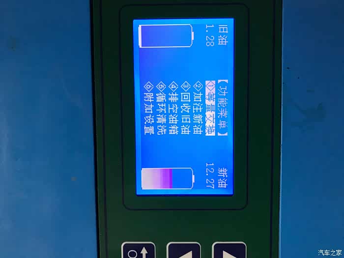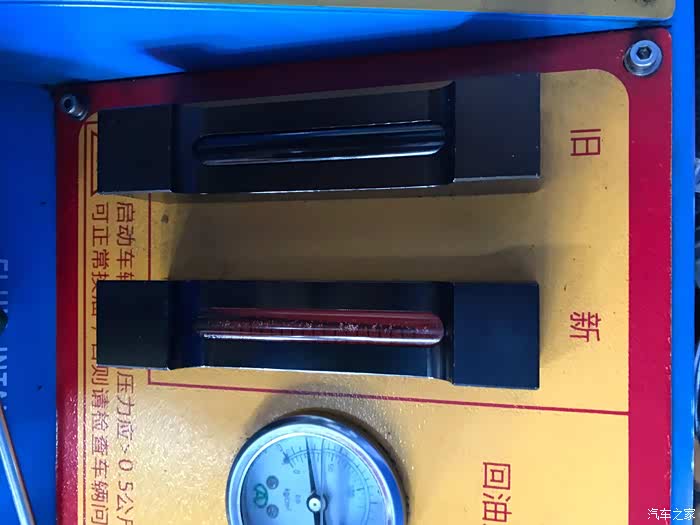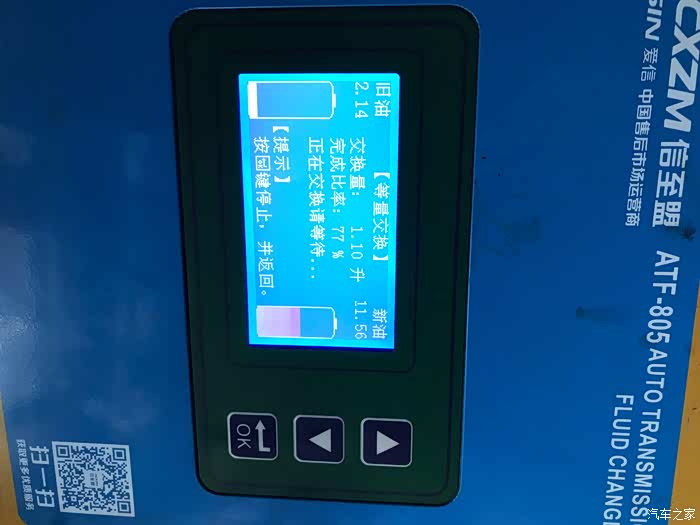 经验丰富的师傅先只置换1.1升,并在置换成功之后选择了机器菜单中的一个“清洗”功能,清洗大约进行了五分钟