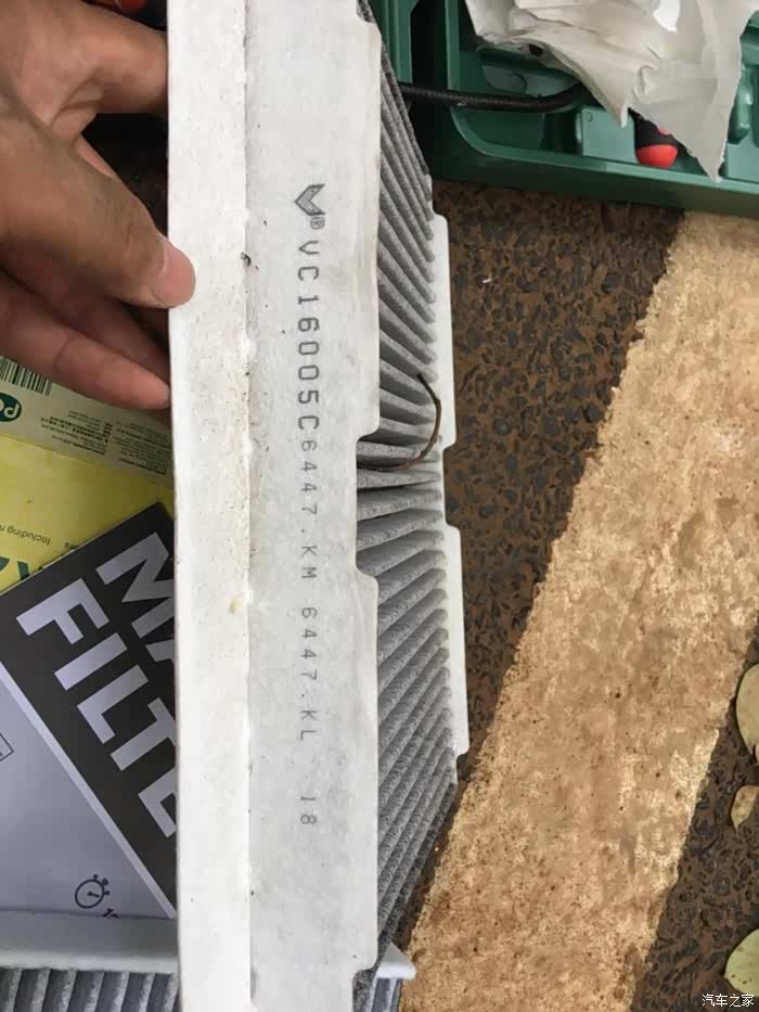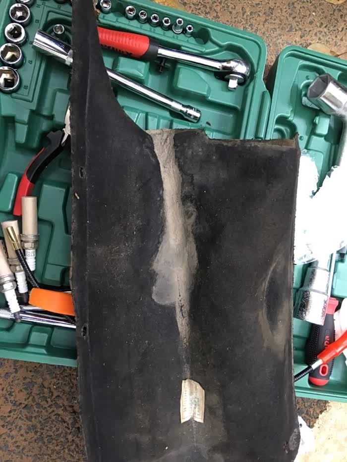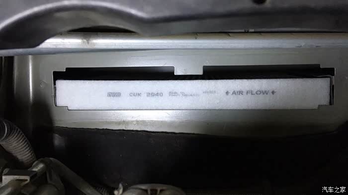 空调滤芯的位置很好找,就在冷却液后面的隔热棉底下盖着呢。取下四颗卡子之后,就看到空调滤芯盖了。