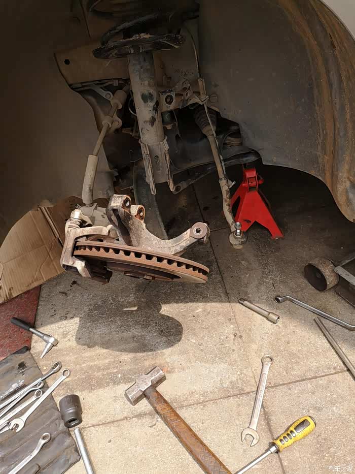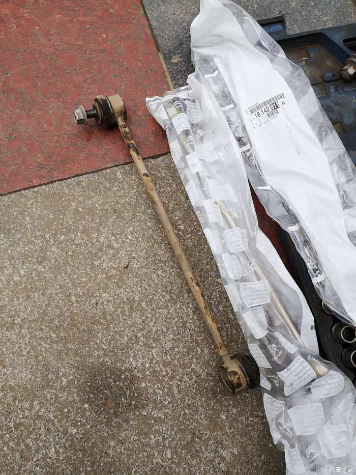 两只平衡杆竖拉杆一并更换,一只原厂的配件还是好的一起先更换了,好的留着下次还可以用,希望用不上才好